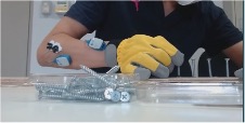よこ編みスペーサーファブリックは、ベースとなる2層の間によこ糸を挿入して編み上げる3層構造(3D)の編み布です。この独自な構造により、衝撃に対するエネルギー吸収が高く、緩衝材としても使用できます。また現在は、靴、ブラジャー、マットレス、カーシート、創傷包帯、医療用パッドなど多様な用途に展開されています。したがって、用途によって要求される性能も異なります。本研究では、多様な用途展開を可能にする新しい技術を布の性能評価とあわせて探究しています。たとえば、糸を横編みスペーサファブリックの編成に挿入するインレイ技術があります。インレイの糸の種類や編み密度を様々に変えることで、新規な横編みスペーサーファブリックの作製が可能となります。これは、スペーサーファブリックの新しい応用に役立つ可能性を持っています。