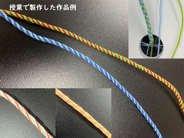 A high school/university collaboration class was held at the Kyoto Prefectural OHKI High School. The class content was KUMIHIMO braid making. This year, it was held for the third consecutive year, and students enjoyed making braids, one of the traditional crafts of Kyoto. This time, it was an experience class unlike a normal class, and the impression report was in the style of reading the printed QR code with a smartphone and writing the report on the smartphone. I was impressed that the program incorporates advanced IT. Also, on the way back, I was very happy that several students came to see me off to the school gate. I would like to teach next year again!