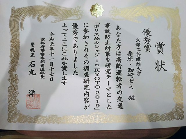 「ポリス&カレッジ in KYOTO 2019」にて優秀賞受賞!